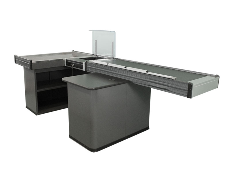 Kassentisch mit elektrischem Laufband für effiziente Kundenabfertigung