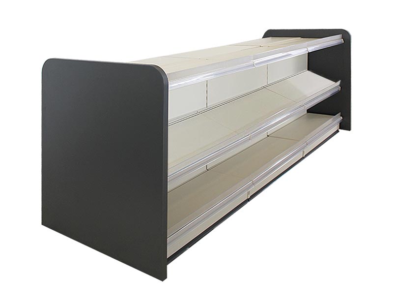 Ladentheke mit 3 Böden und Holzseitenwand | Verschiedene Länge